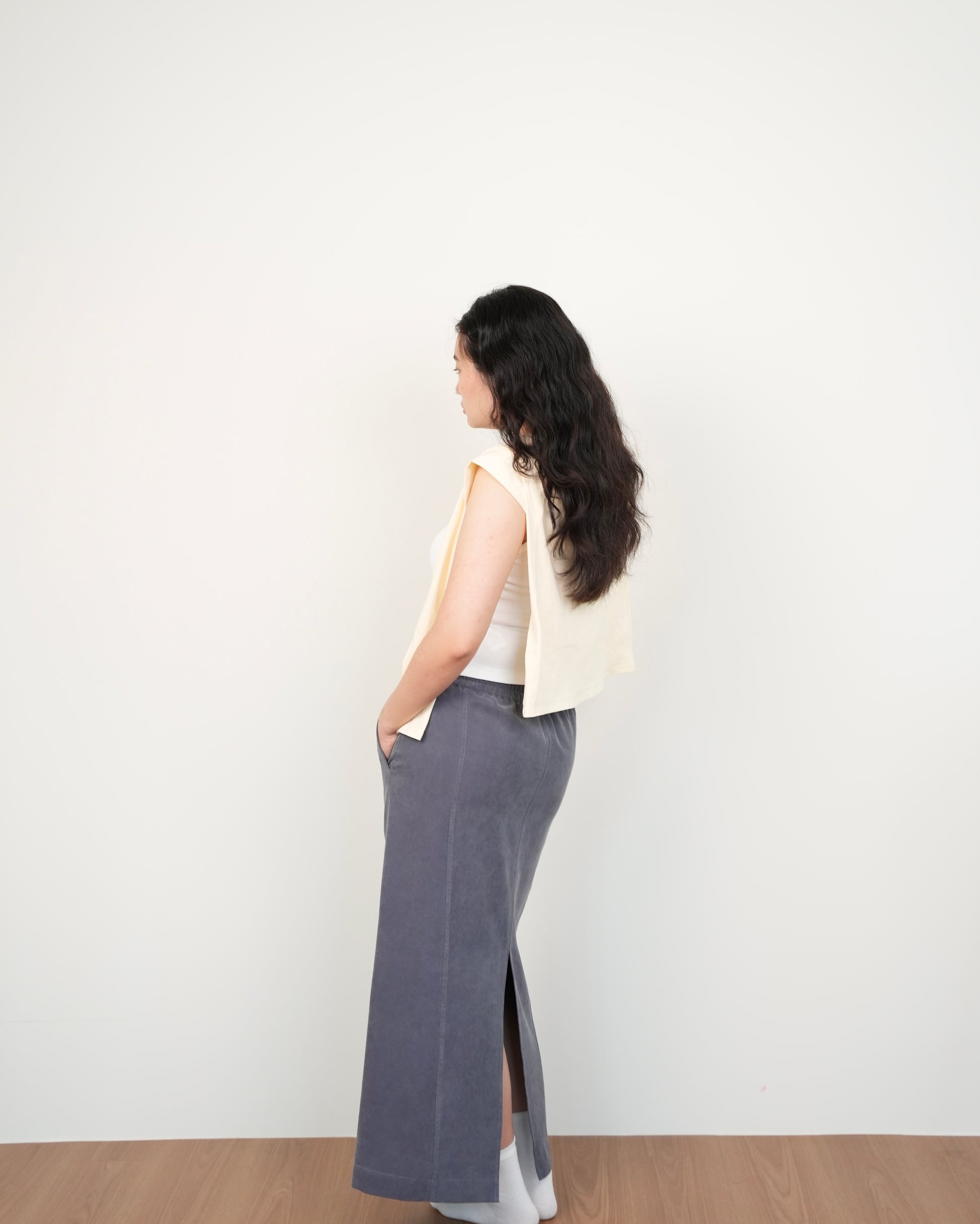 featuring a thick waistband to snatch that waistline and a back slit for easy movement. finished with clean french seams for a polished, durable look.