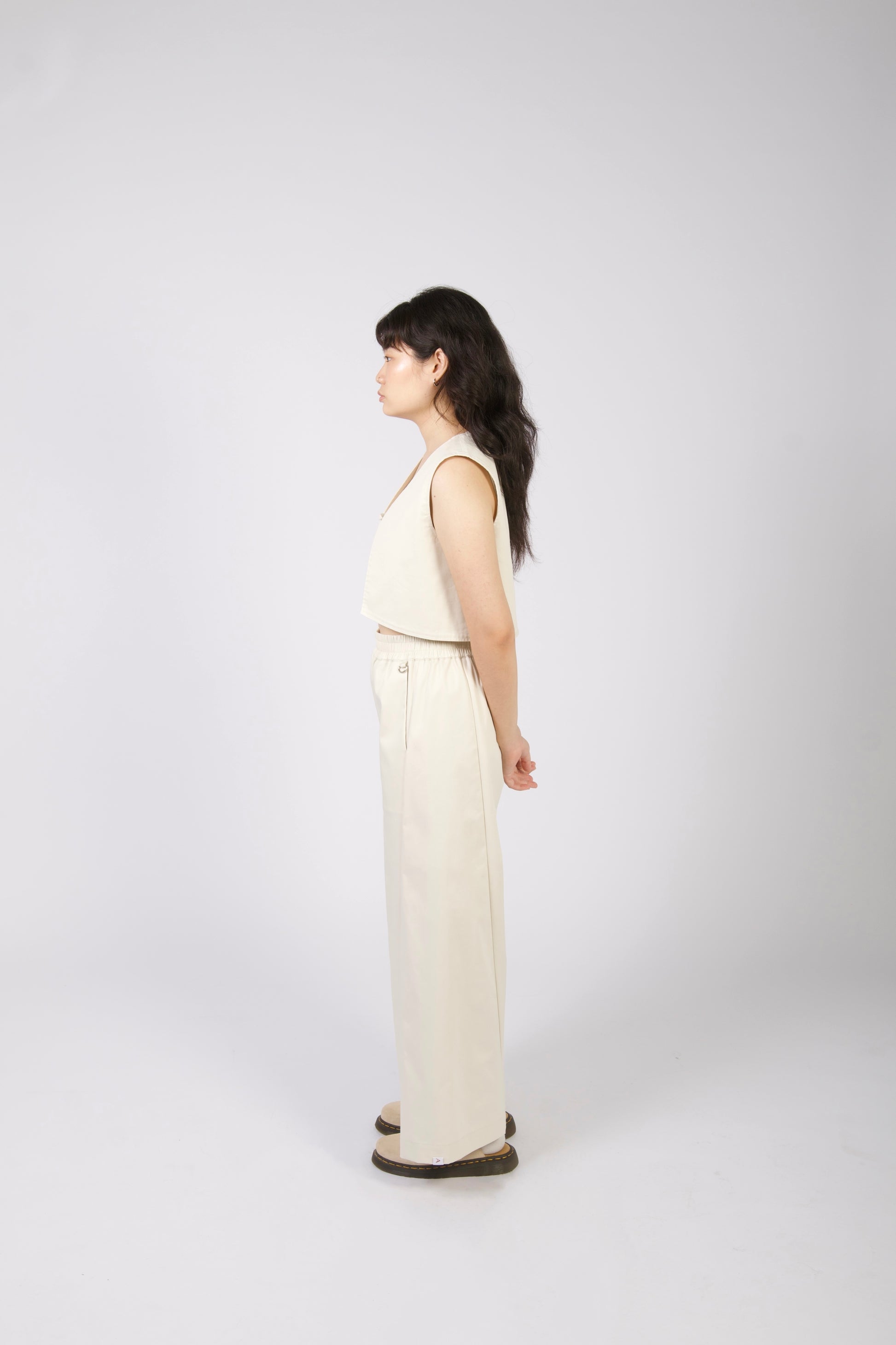 a straight-leg pant with a twist — featuring a trapezium silhouette that adds structure and shape.