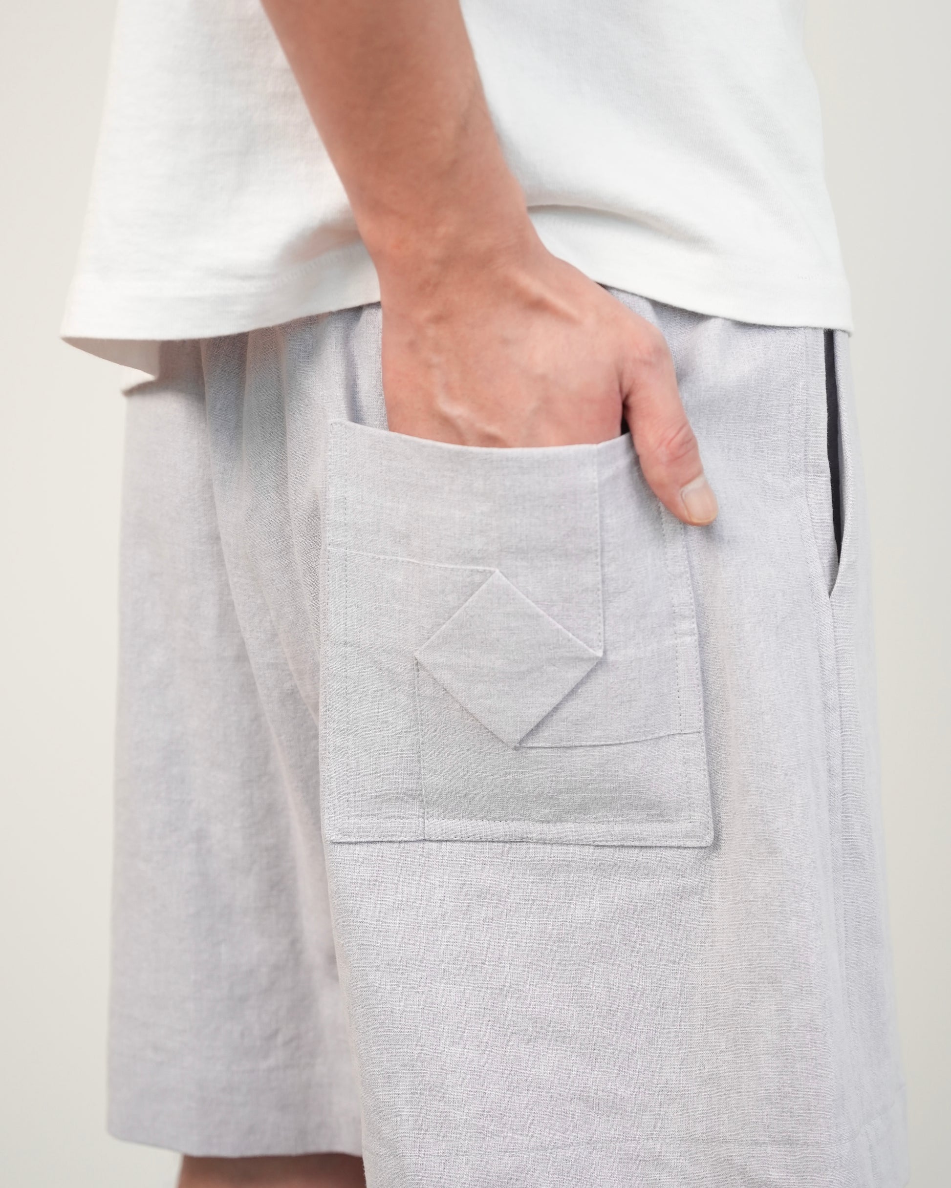 featuring 2 slant pockets at the sides and a unique origami patch pocket at the back. finished with bias tape and a thick waistband to snatch that waistline.